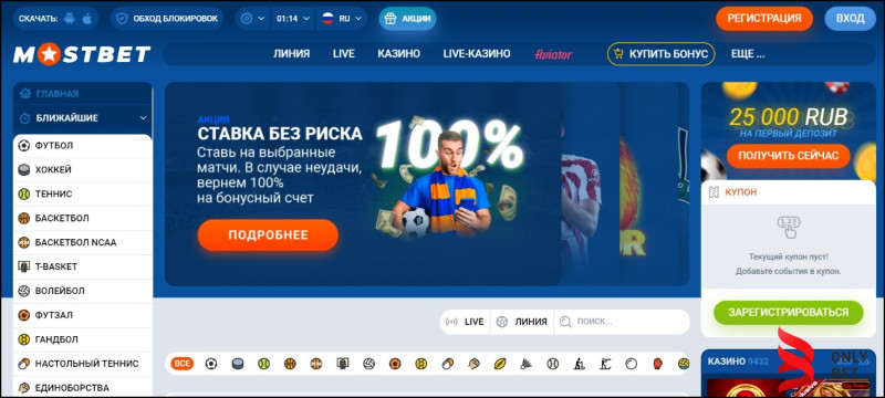 Важно! Регистрируйся в БК с промокодом MOSTWIN2023 и получи бонус до 25 000 RUB за первый депозит.